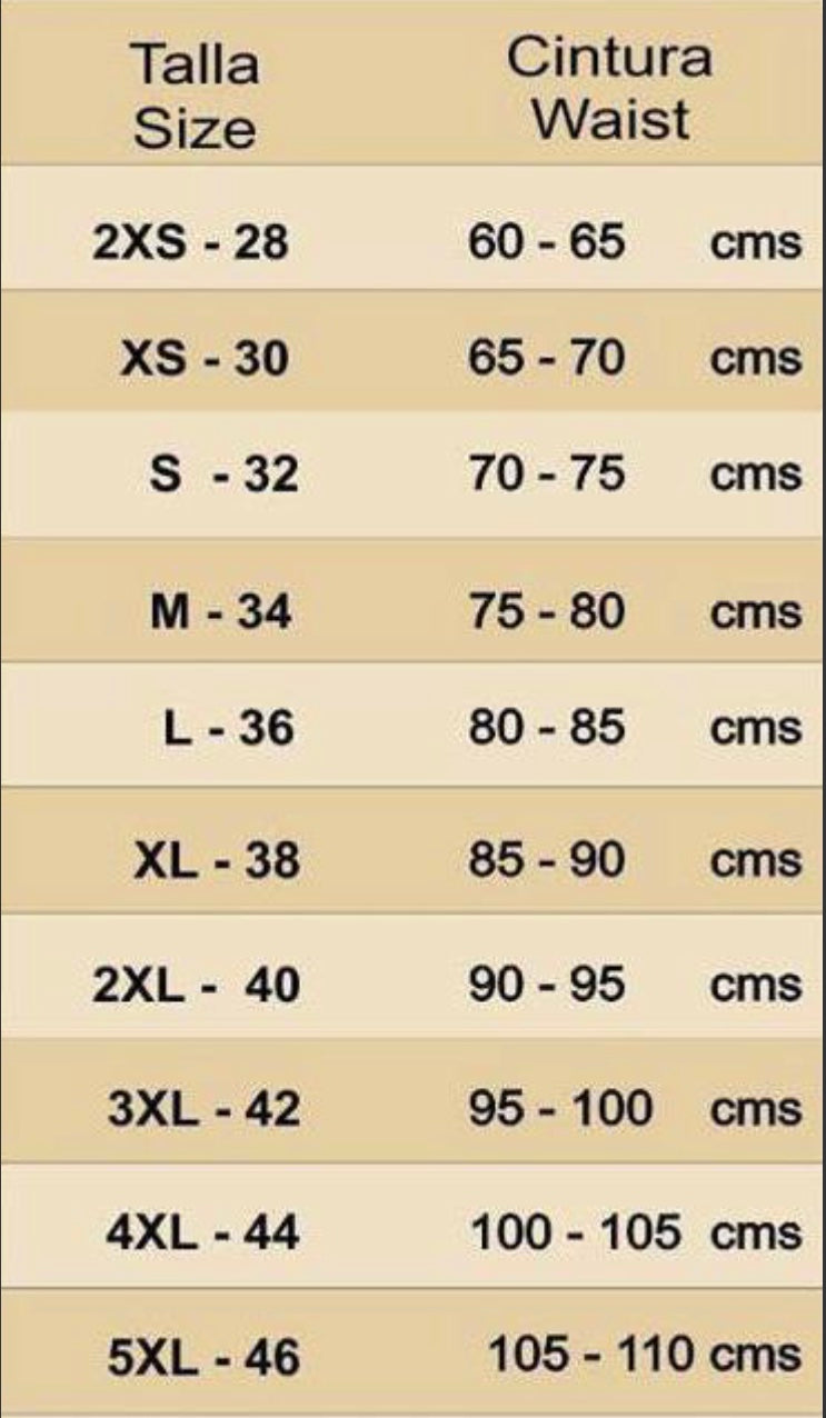 Tip de Talla: Es la misma talla que en blusa, por ejemplo si es S (Chica) es S en Cinturilla, si esta entre dos Medidas por Ejemplo S y M se Recomienda adquirir la talla M. Otro ejemplo si es L y XL en blusa se recomienda adquirir la talla XL en Diosa Corset.